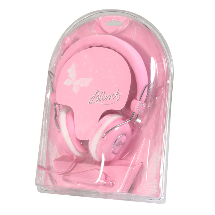 Выполненная в розовых тонах яркая упаковка ещё раз напоминает о том, что эти наушники предназначены исключительно для блондинок – внешне или в душе!